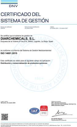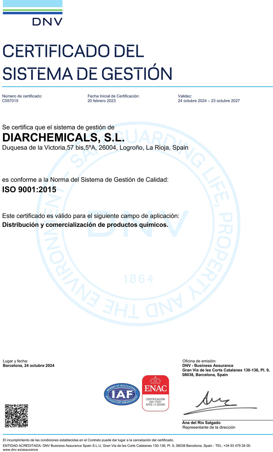 Con esta certificación en CALIDAD ofrecemos un valor añadido a los servicios que ofrecemos en DIARCHEMICALS,